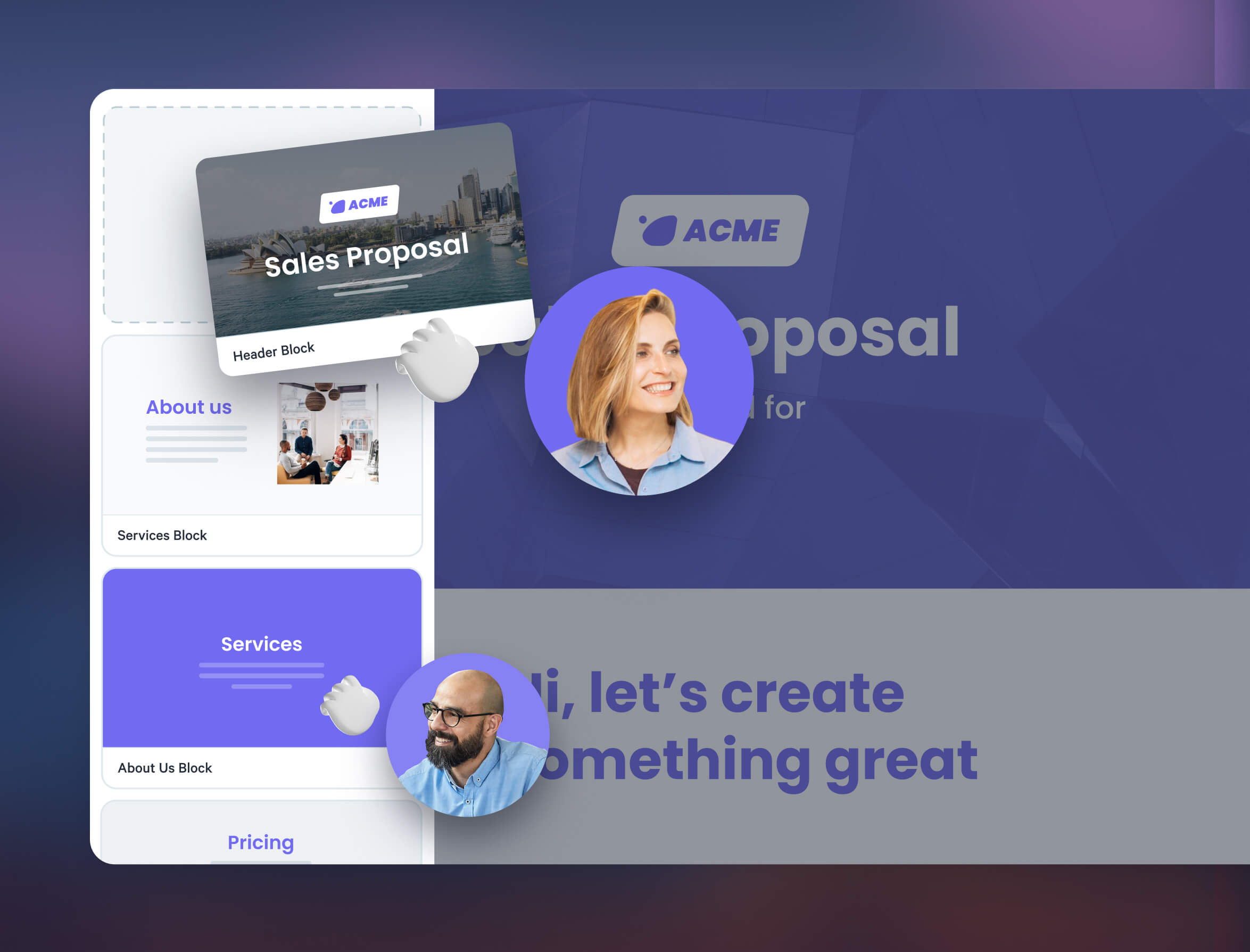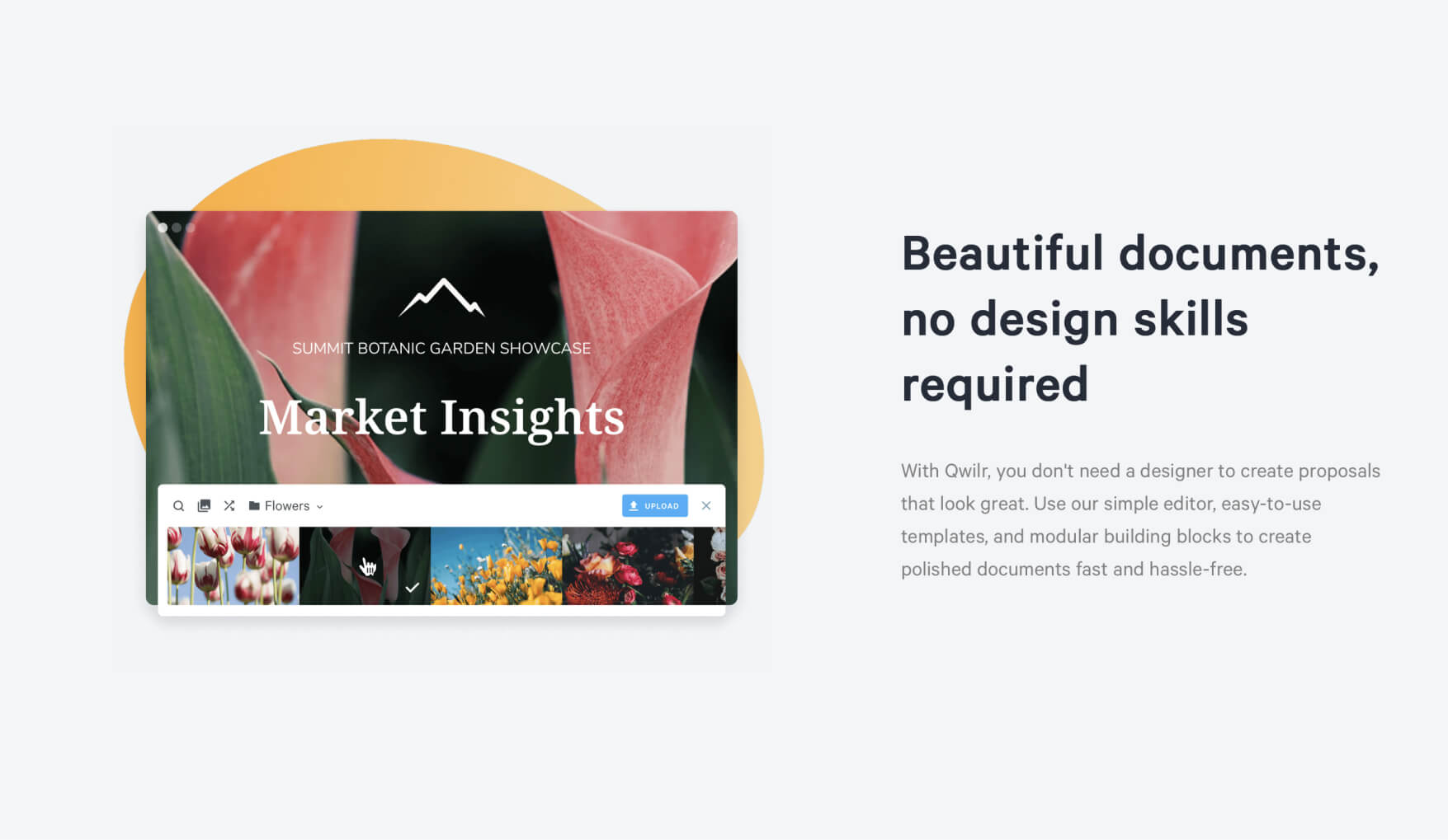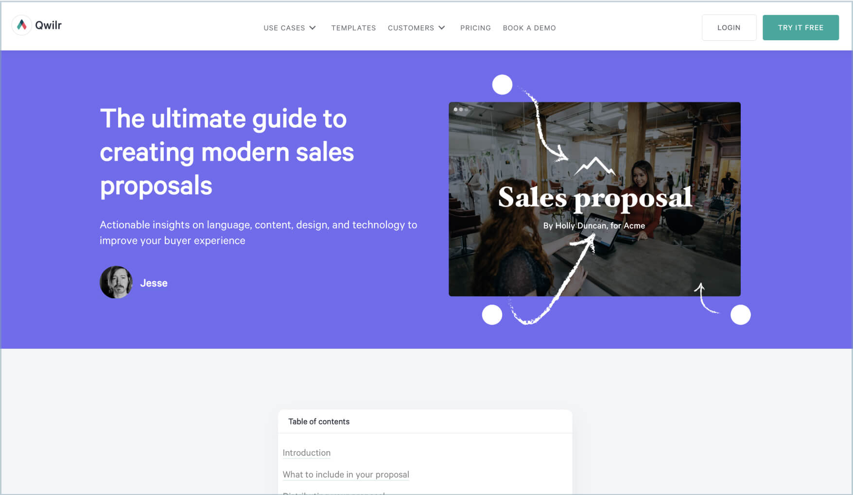 Competitors were still mostly platforms for creating PDFs online, and our biggest differentiator was being uniquely web first. A benefit not just to the users of our platform (called the “sellers”), but to the audience they’d send their pages to (the “buyers”). I needed a way to visualise this difference to customers, and even when applied to different styled Qwilr Pages, still look and feel like Qwilr.