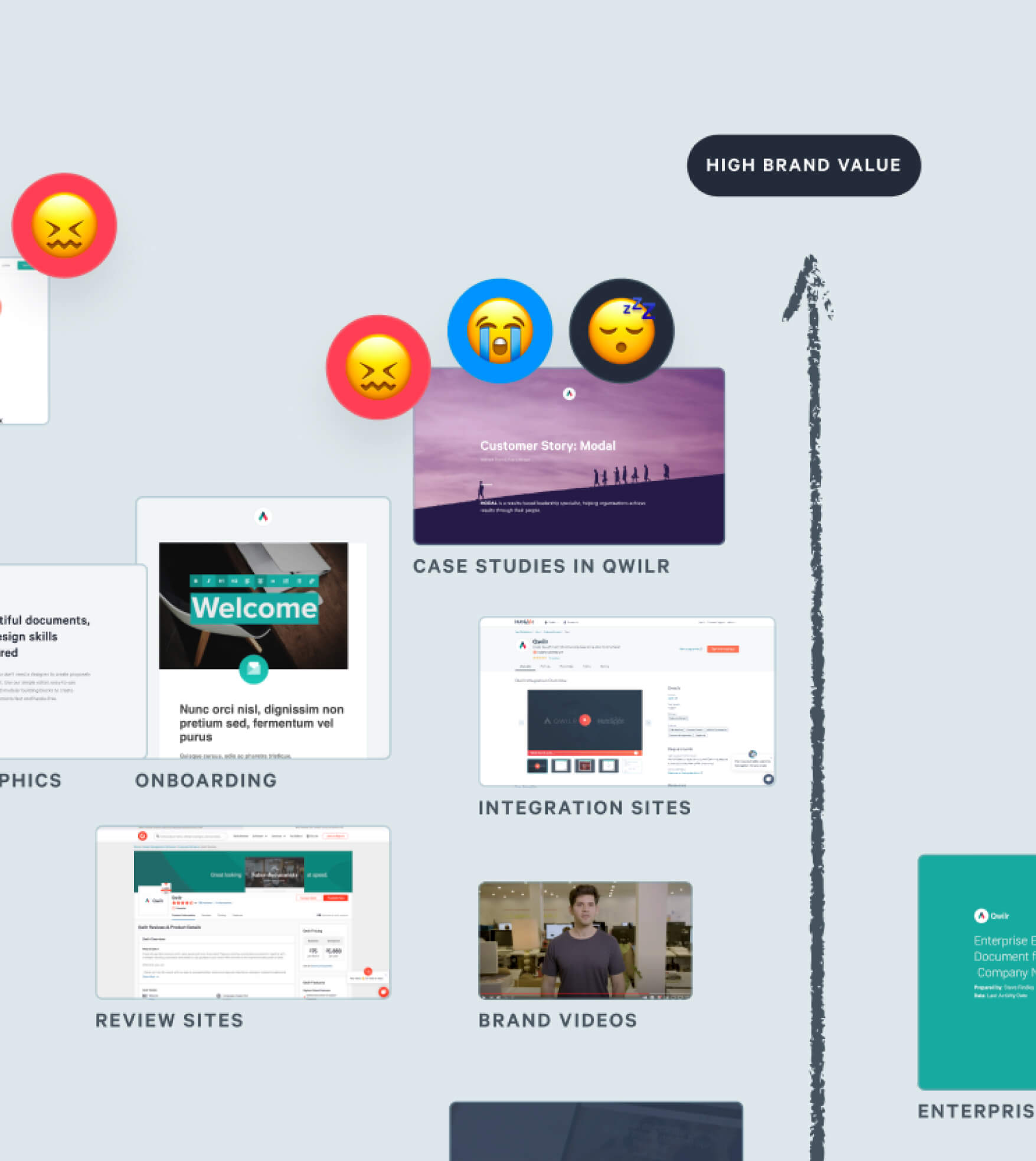 Bringing all this work together gave us a flexible framework for creating feature narratives, and visualising our customers JTBD. From getting a notification the first time a page is viewed, explaining key concepts in the product, to the moment the buyer signs on the dotted line. Always highlighting how Qwilr improves the buyer & seller relationship.